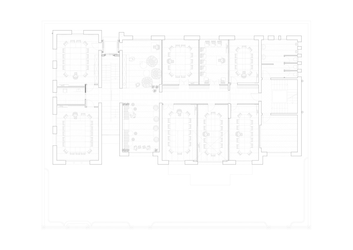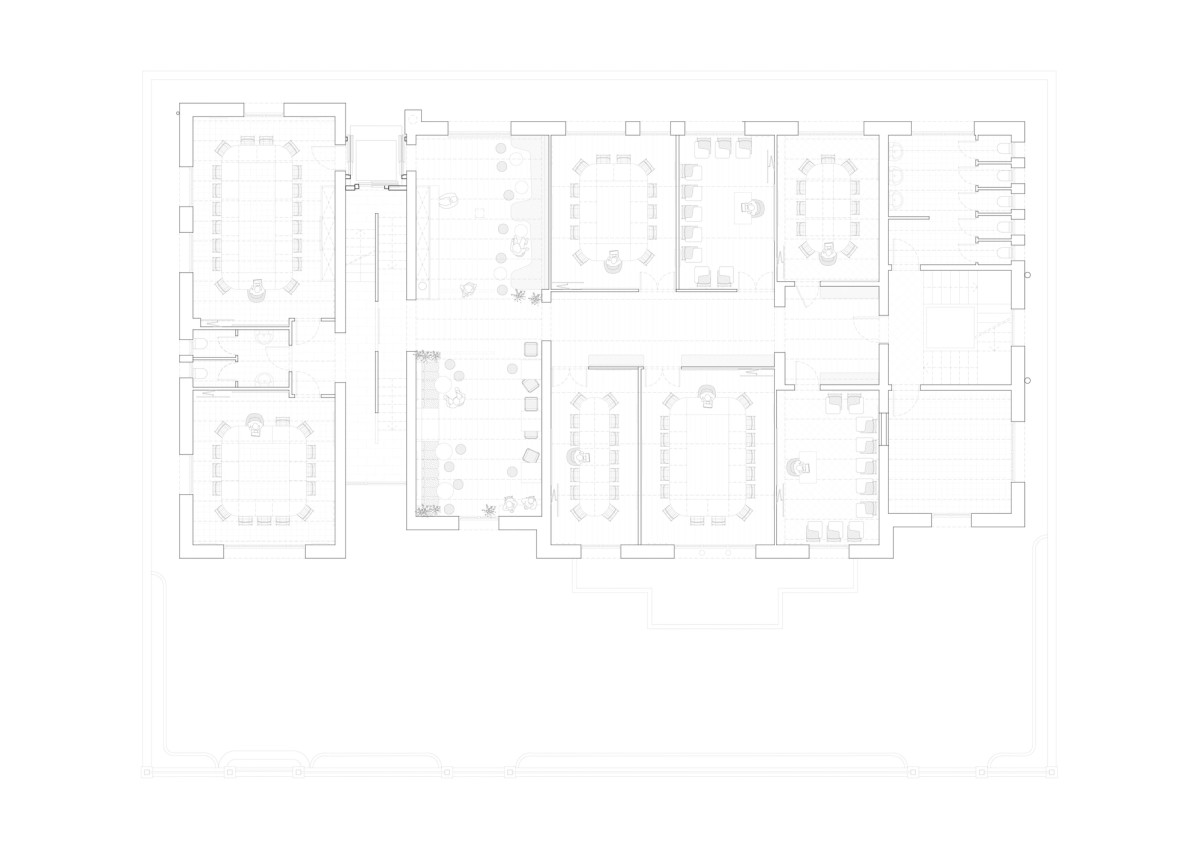 Barcelona's Casa Degli Italiani gets a second life as Expanish language school, where we balance Renaissance bones with contemporary learning needs. The 18th-century building keeps its wooden beams, vaulted ceilings, and decorative details while gaining "Tapas" common areas for student socializing and "Siesta Spaces" for rest breaks. Every original window, door, and molding gets restored rather than replaced, with custom furniture designed to complement rather than compete with historical elements. The material palette honors the building's eclectic heritage through rich finishes and careful color choices—burgundy, blue, and green add contemporary warmth without overwhelming the classical framework. Greenery throughout brings freshness to the learning environment. The project demonstrates how adaptive reuse can preserve architectural memory while serving modern educational functions. This isn't about erasing history but integrating it into present-day programming through respectful intervention.