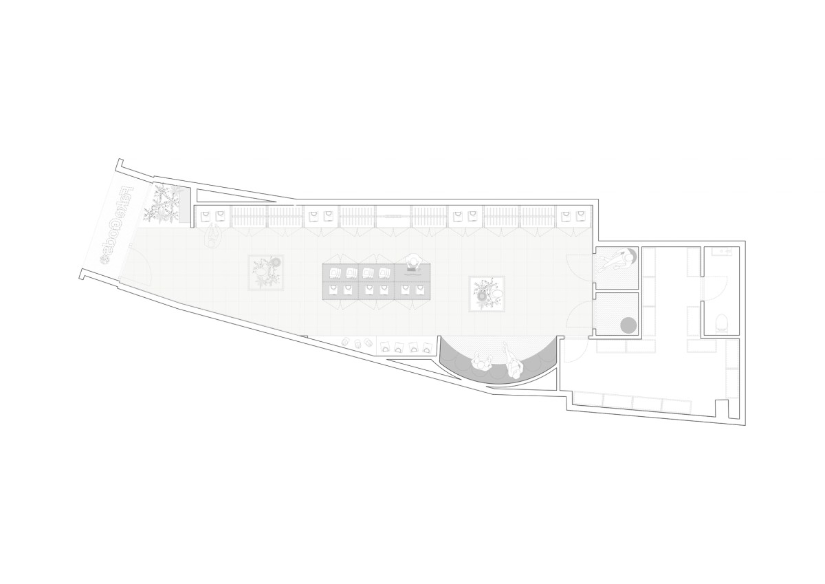 On Madrid’s Fuencarral Street, Fake Gods’ first store reimagines the Garden of Eden for streetwear. Glass vitrines containing mannequins function as museum exhibits surrounded by contained vegetation, while neoclassical orange columns provide structural and visual contrast. The acrylic facade features the brand's backlit logo above a stone-and-plant garden arrangement. Inside, corporate cyan blue defines the main circulation path, enhanced by strategic lighting that creates an immersive atmosphere. Stainless steel and acrylic surfaces multiply reflections and dissolve spatial boundaries, while the ceiling treatment suggests infinite sky above continuous flooring. A central steel table displays key pieces, and velvet sofas arranged stadium-style create a VIP zone decorated with vintage football photography. The space succeeds as both retail environment and brand statement, merging digital origins with physical presence through technological materials and millimetric precision.