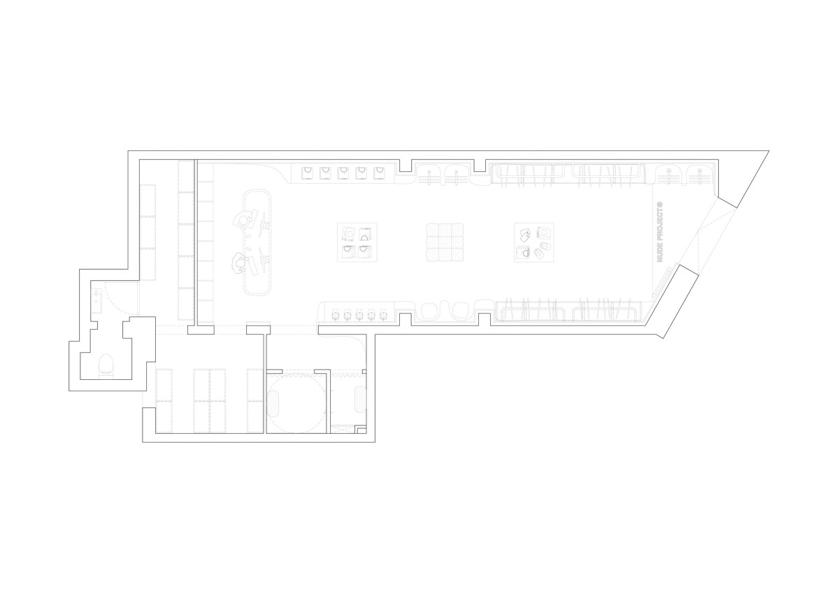 Ibiza’s Bartomeu de Roselló Avenue hosts Nude Project’s seventh store, rooted in vernacular Balearic architecture. Organic lime-and-mortar walls, terracotta floors, and exposed wooden beams set the tone, while mid-century acrylic tables and Persian rugs add contemporary texture. Light turquoise shelving provides color contrast while maintaining the island's relaxed aesthetic. The space feels like a 1970s artist retreat, fitting for a brand targeting creative communities. Backlit product niches showcase premium pieces, while an organic Krion structure creates a VIP zone with velvet seating and blue curtains. Props include speakers, vinyl records, books, and the signature pink cowboy hat that defines the brand's visual identity. The result connects Nude Project's youthful energy with Ibiza's historic role as a creative sanctuary, opening just in time for summer season.